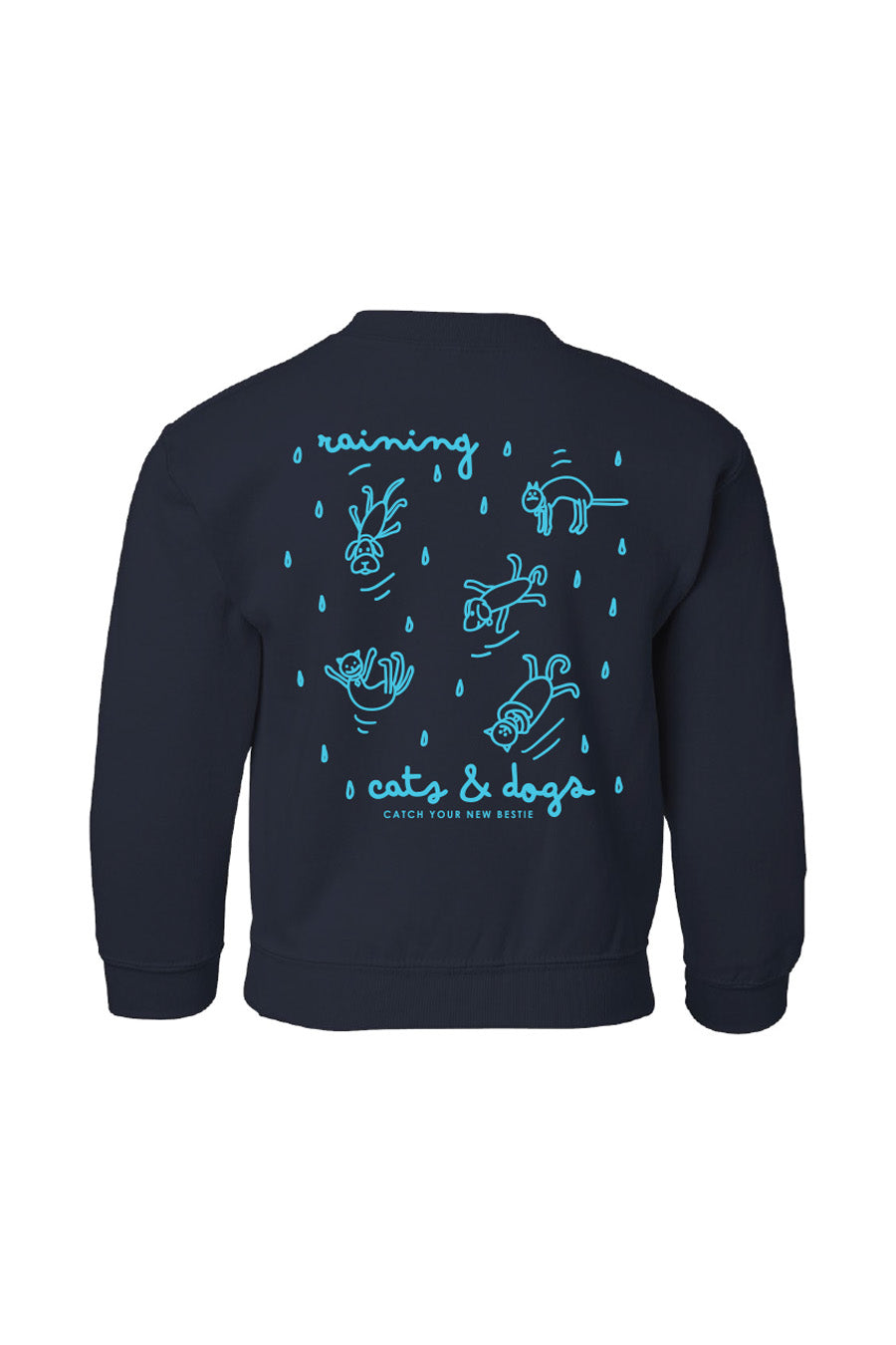 Raining Cats and Dogs Youth Crewneck - S is backordered and will ship as soon as it is back in stock.